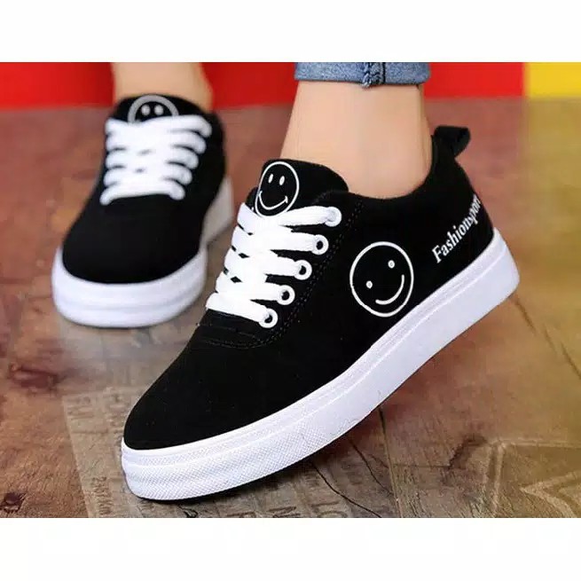 Sepatu Sneakers Wanita Smile Full Hitam Shopee Indonesia . Sumber Gambar : shopee.co.id